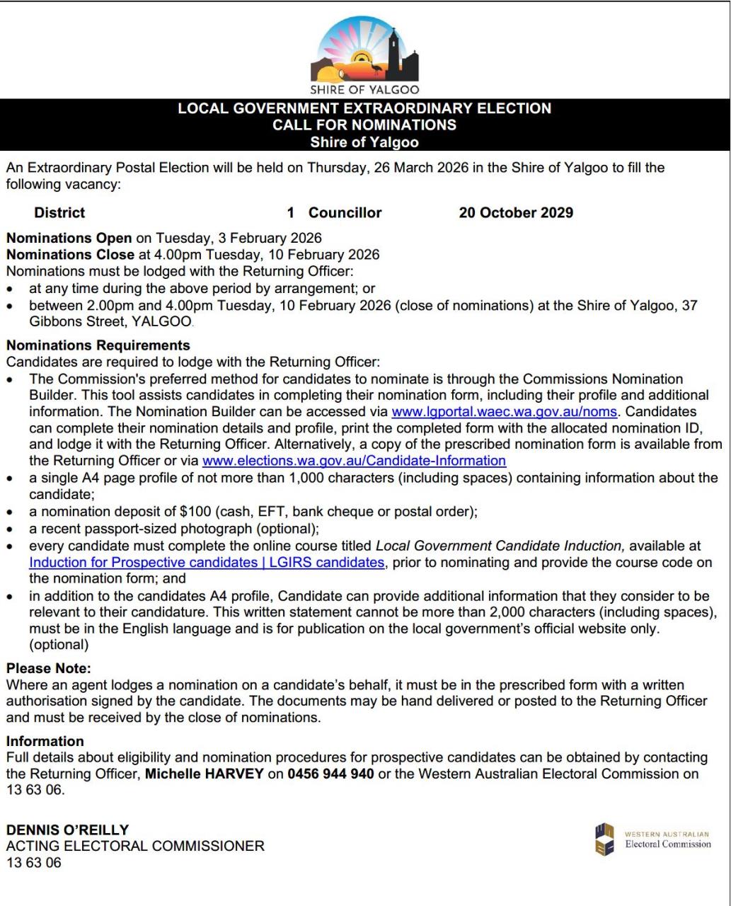 Tender No. RFT 01/24 - Flood Recovery Works for the Shire of Yalgoo