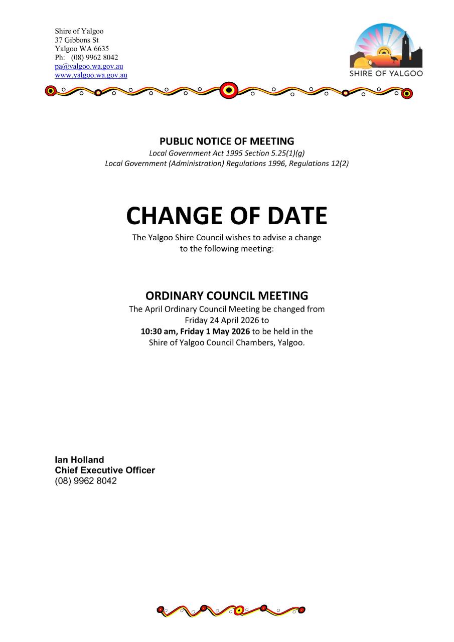 Ordinary Council Meeting Change of Date